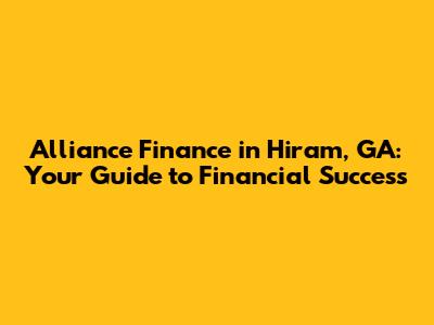 Alliance Finance In Hiram, GA: Your Guide To Financial Success