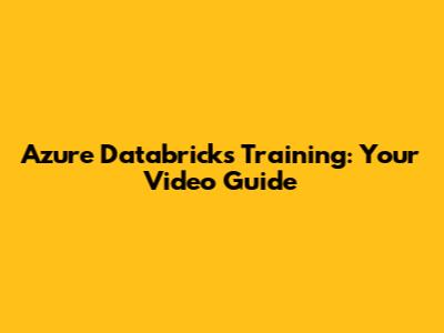 Azure Databricks Training: Your Video Guide