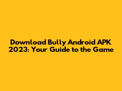 Bully: Download The Android APK In 2023