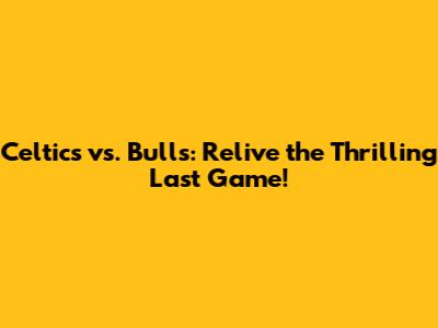 Celtics Vs. Bulls: Relive The Thrilling Last Game!