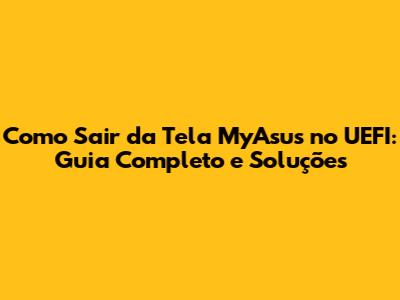 Como Sair da Tela MyAsus no UEFI: Passo a Passo
