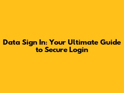 Data Sign In: Your Ultimate Guide To Secure Login