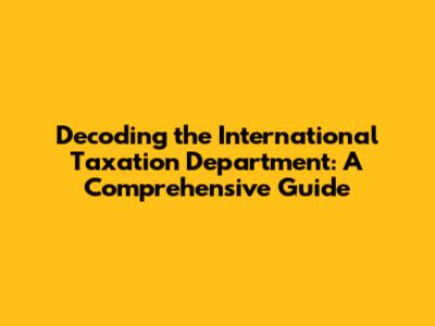 Decoding The International Taxation Department: A Comprehensive Guide