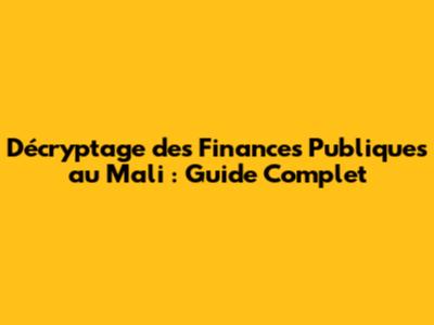 Décryptage Des Finances Publiques Au Mali : Guide Complet
