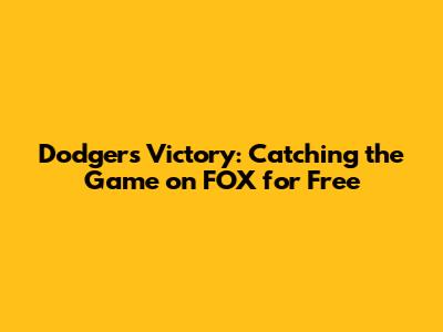 Dodgers Victory: Catching The Game On FOX For Free