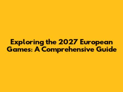 Exploring The 2027 European Games: A Comprehensive Guide