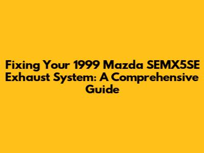 Fixing Your 1999 Mazda SEMX5SE Exhaust System: A Comprehensive Guide