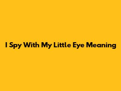 I Spy With My Little Eye: Unraveling The Meaning