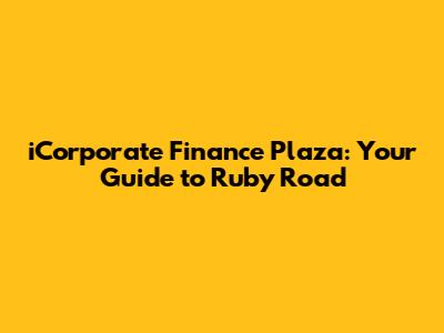 Hey guys! Ever heard of iCorporate Finance Plaza on Ruby Road? If you're looking to dive into the world of finance or just curious about this particular spot, you've come to the right place. This guide will give you the lowdown on everything you need to know. Let's get started!