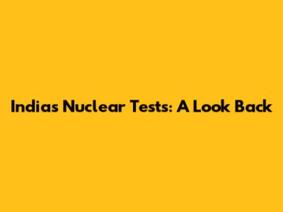 India's Nuclear Tests: A Look Back
