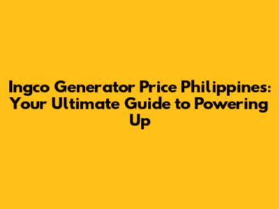 Ingco Generator Prices In The Philippines: A Complete Guide