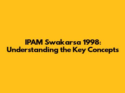 IPAM Swakarsa 1998: Understanding The Key Concepts