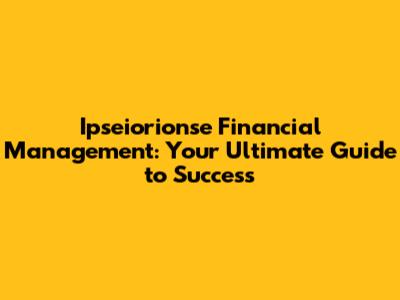 Ipseiorionse Financial Management: Your Guide To Success