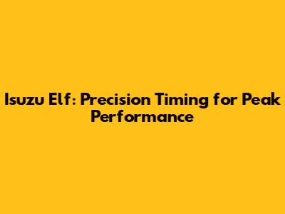 Hey guys, let's dive deep into something super crucial for your Isuzu Elf: timing. We're talking about the engine's timing, specifically how to get it perfectly optimized for that sweet spot of performance and efficiency. When your Isuzu Elf's timing is spot on, you're looking at a smoother ride, better fuel economy, and an engine that purrs like a kitten. Conversely, if that timing is off, even by a hair, you're gonna notice it – rough idling, loss of power, increased emissions, and potentially even some serious engine damage down the line. So, understanding and correctly setting the top timing for your Isuzu Elf isn't just a routine maintenance task; it's a fundamental aspect of keeping your trusty Elf running reliably and efficiently for years to come. We'll cover why it's so important, how to check it, common issues, and what you can do to ensure your Elf is always in sync.