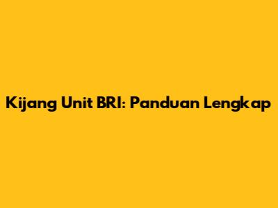 Kijang Unit BRI: Panduan Lengkap