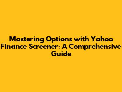 Mastering Options With Yahoo Finance Screener: A Comprehensive Guide