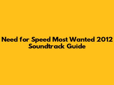 Need For Speed Most Wanted 2012 Soundtrack Guide