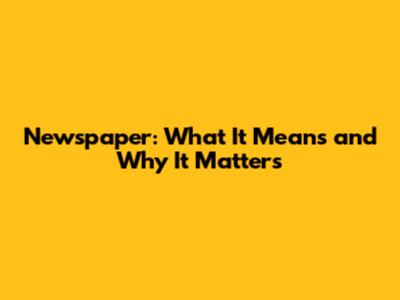 Newspaper: What It Means And Why It Matters