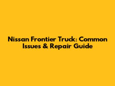Nissan Frontier Truck: Common Issues & Repair Guide