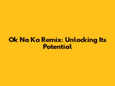 Ok Na Ka Remix: Unlocking Its Potential
