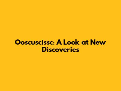 Ooscuscissc: A Look At New Discoveries