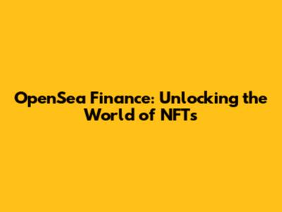 OpenSea Finance: Unlocking The World Of NFTs