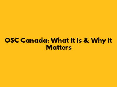 OSC Canada: What It Is & Why It Matters