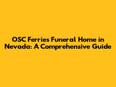 When it comes to honoring the lives of loved ones, choosing the right funeral home is paramount. In Nevada, OSC Ferries Funeral Home stands out as a trusted and compassionate provider of end-of-life services. This comprehensive guide delves into what makes OSC Ferries Funeral Home a preferred choice for families during difficult times.