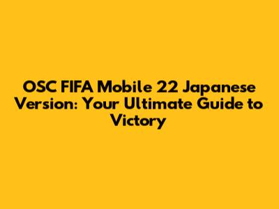 OSC FIFA Mobile 22 Japanese Version: A Comprehensive Guide