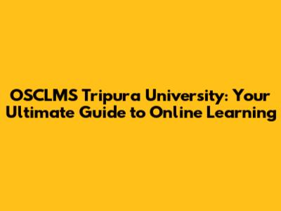 OSCLMS Tripura University: Your Ultimate Guide To Online Learning