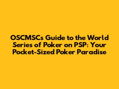 Hey poker fanatics and PSP enthusiasts! Ready to shuffle up and deal? Let's dive deep into the world of the World Series of Poker (WSOP) on the PlayStation Portable (PSP), brought to you by the OSCMSC team! This isn't just a game; it's a portable poker paradise, a chance to experience the thrill of the WSOP wherever you go. Whether you're a seasoned poker pro or a newbie just learning the ropes, this guide will equip you with everything you need to know to conquer the felt and maybe, just maybe, take down the virtual WSOP championship.