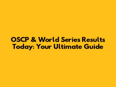 OSCP & World Series Results: Your Ultimate Guide