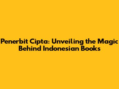 Penerbit Cipta: Unveiling The Magic Behind Indonesian Books
