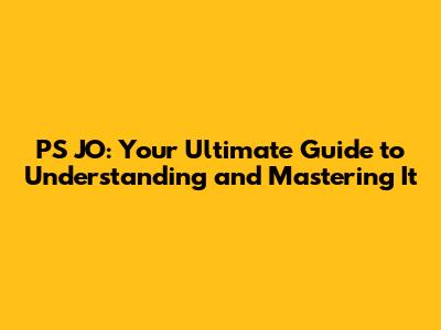 PS JO: Your Ultimate Guide To Understanding And Mastering It