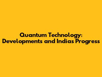 Quantum Technology: Developments And India's Progress