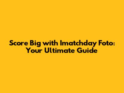 Score Big With Imatchday Foto: Your Ultimate Guide