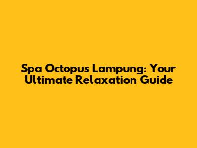 Spa Octopus Lampung: Your Ultimate Relaxation Guide
