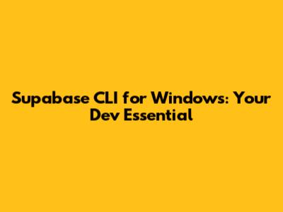 Hey everyone! So, you're diving into the awesome world of Supabase and looking to streamline your workflow, especially on a Windows machine? You've probably heard whispers about the Supabase CLI, and let me tell you, guys, it's a game-changer. We're going to unpack why the Supabase CLI is your new best friend for Windows development, how to get it set up, and some cool tricks to make your life as a developer way easier. Forget clunky setups or dealing with complicated configurations – the CLI is here to simplify things, letting you focus on building amazing applications. Whether you're a seasoned pro or just starting out, understanding and utilizing the Supabase CLI on Windows is a superpower you'll want to have in your arsenal. Let's get this party started and make your Supabase development experience on Windows smooth as butter!
