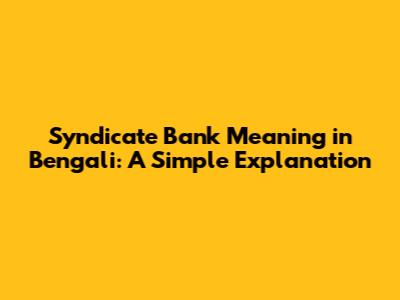 Syndicate Bank Meaning In Bengali: A Simple Explanation