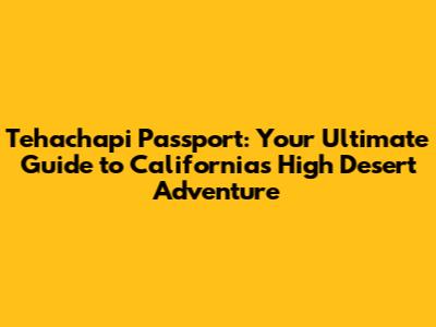 Tehachapi Passport: Your Guide To Exploring California's High Desert