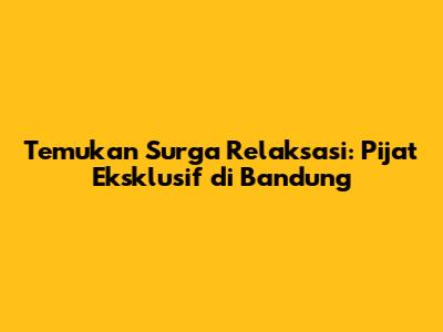 Temukan Relaksasi Terbaik: Pijat Eksklusif Di Bandung