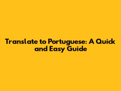Translate To Portuguese: A Quick And Easy Guide