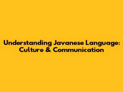 Understanding Javanese Language: Culture & Communication