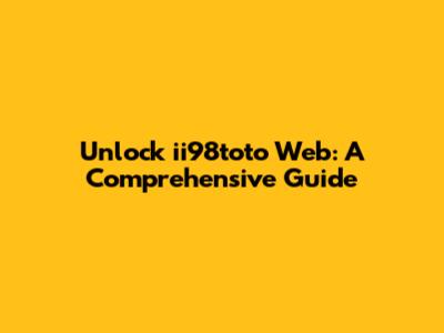 Unlock Ii98toto Web: A Comprehensive Guide