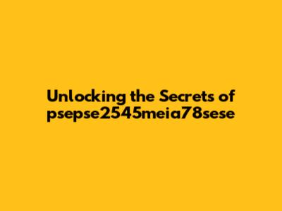 Unlocking The Secrets Of Psepse2545meia78sese