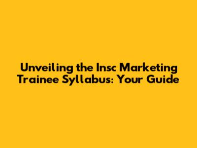Unveiling The Insc Marketing Trainee Syllabus: Your Guide