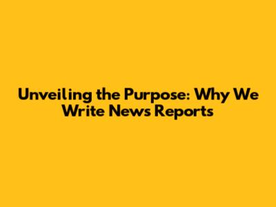 Unveiling The Purpose: Why We Write News Reports