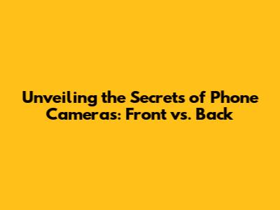 Unveiling The Secrets Of Phone Cameras: Front Vs. Back