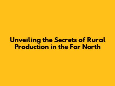 Unveiling The Secrets Of Rural Production In The Far North