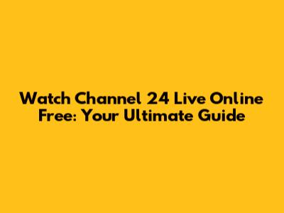 Watch Channel 24 Live Online Free: Your Ultimate Guide